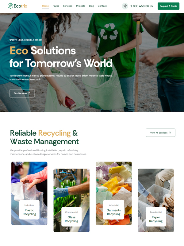 Ecotrix is a fresh and modern template for all types of Recycling Services, Waste Disposal,
